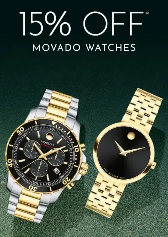 Stop by and take 15% off on Movado watches in store for a limited time.