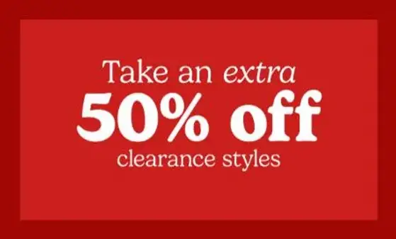 Hurry in and take an extra 50% off clearance styles in store for a limited time.