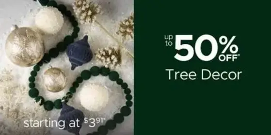 Stop by and get up to 50% off tree decor in store for a limited time.