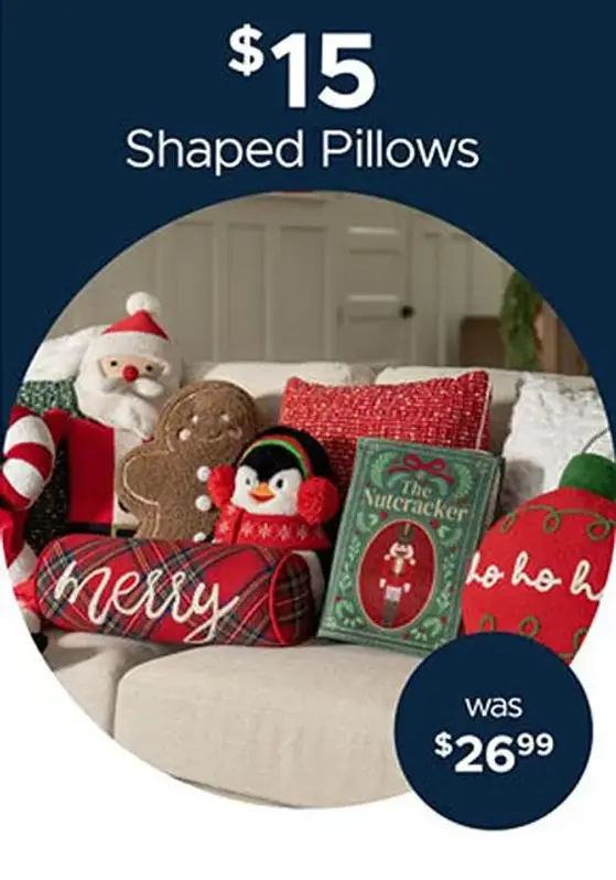 Hurry in and get $15 shaped pillows in store for a limited time.