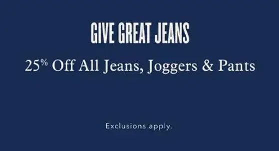 25% off All Jeans, Joggers and Pants