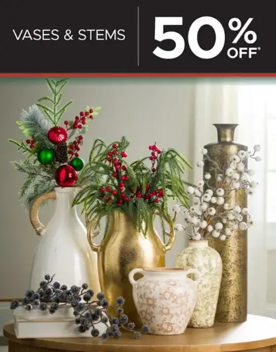 Hurry in and take 50% off vases & stems in store for a limited time.