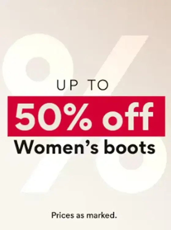 Hurry in and get up to 50% off on women's boots in store for a limited time.