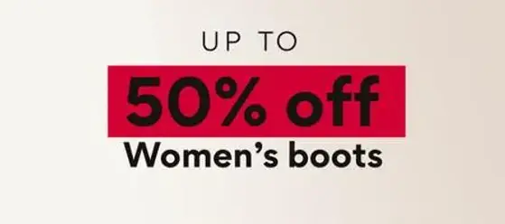 Hurry! Shop in store and get up to 50% off women's boots.