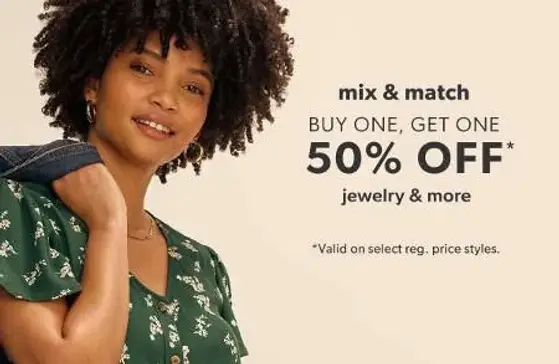 Buy One, Get One 50% off Jewelry and More